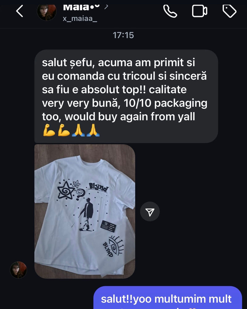 Fiecare produs are in descriere un tabel de marimi explicit. Daca aveti nevoie de extra asistenta, ne puteti scrie oricand pe Instagram la @blyndclothes